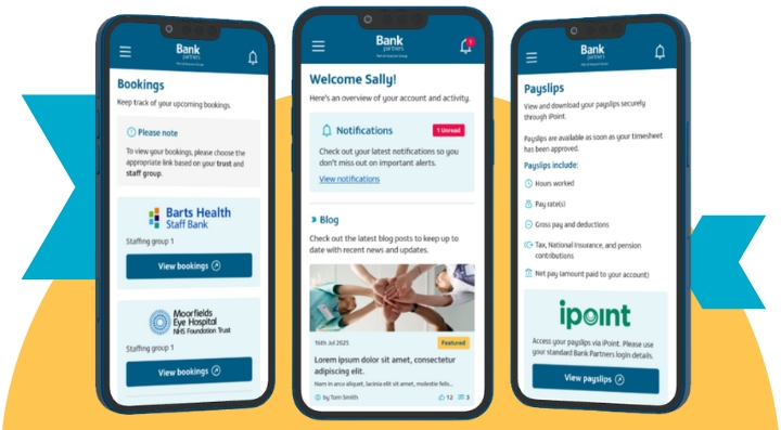 Whether you're booking shifts, downloading payslips, or completing mandatory training, the portal makes it all effortless. You’ll also receive real-time updates straight to your phone and get fast, friendly support from the Bank Partners team whenever you need it.
